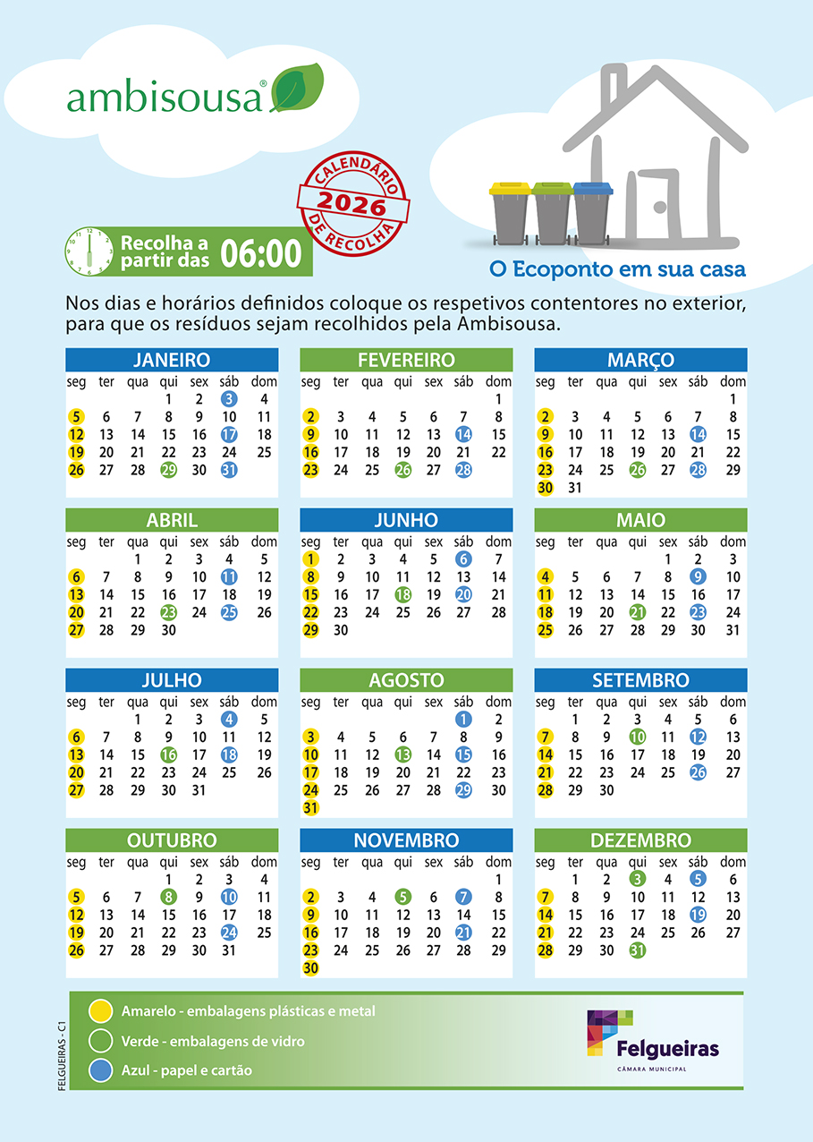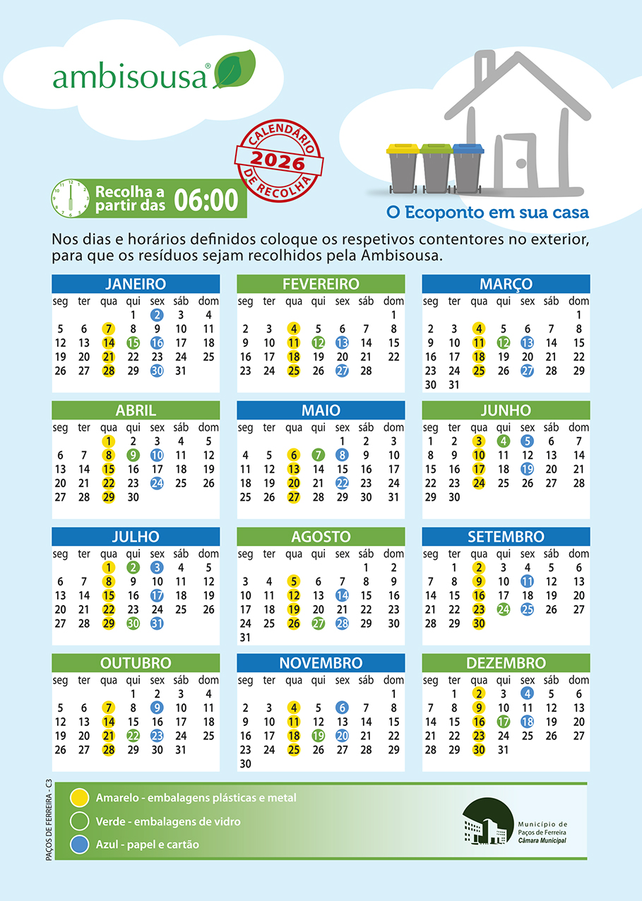 Calendários da Recolha Porta-a-Porta 2026 Município de Penafiel ![]() Município de Paredes _ Besteiros e Cristelo ![]() Município de Lousada ![]() Município de Paredes _ Gandra, Lordelo, Rebordosa ![]() Município de Felgueiras ![]() Município de Paços de Ferreira ![]() |